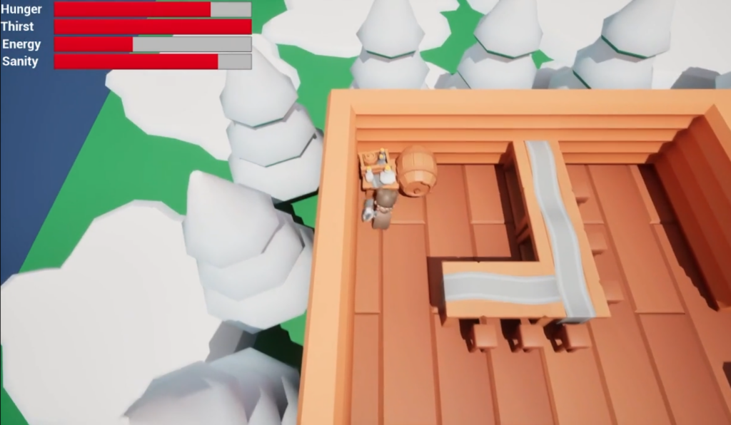 A cozy digital pet game, where the player must manage the needs of a snowed in Viking.